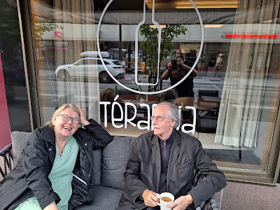 Kävelykierros kauppakadulla johti Terapian terassille. Hiljaista oli, mutta juttuseuraa löytyi ohikulkevista puolitutuusta.